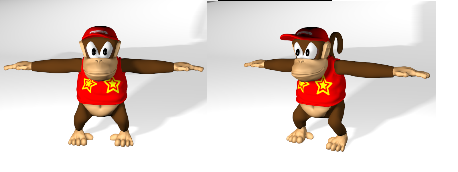 CatLoverMolly wrote:As long as y'get the stars aligned and the fur to have DK's fur effect, I should think that we're good. Other mminor nitpicks include the angry face, and maybe his arms? They're a bit too thick and they look like sleeves.