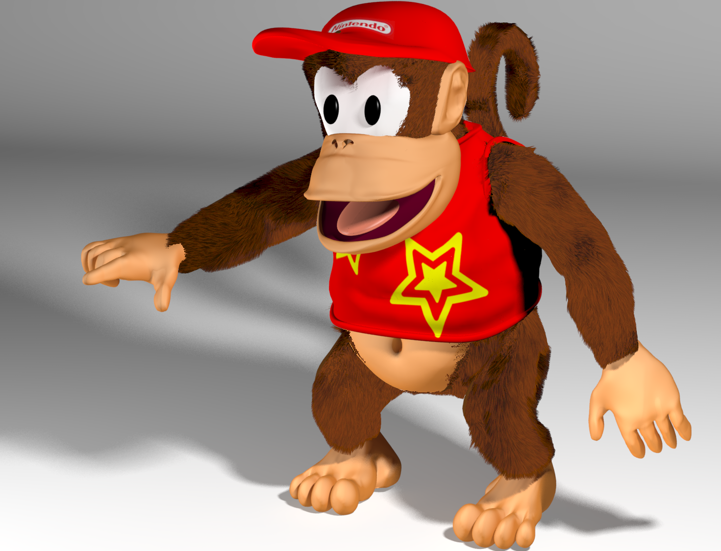 Rare's Diddy never had that opposable toe, so it's going to be very tricky to incorporate it without straying too far from their design. I believe Cyclone can do it, but it'll certainly take some clever modelling.