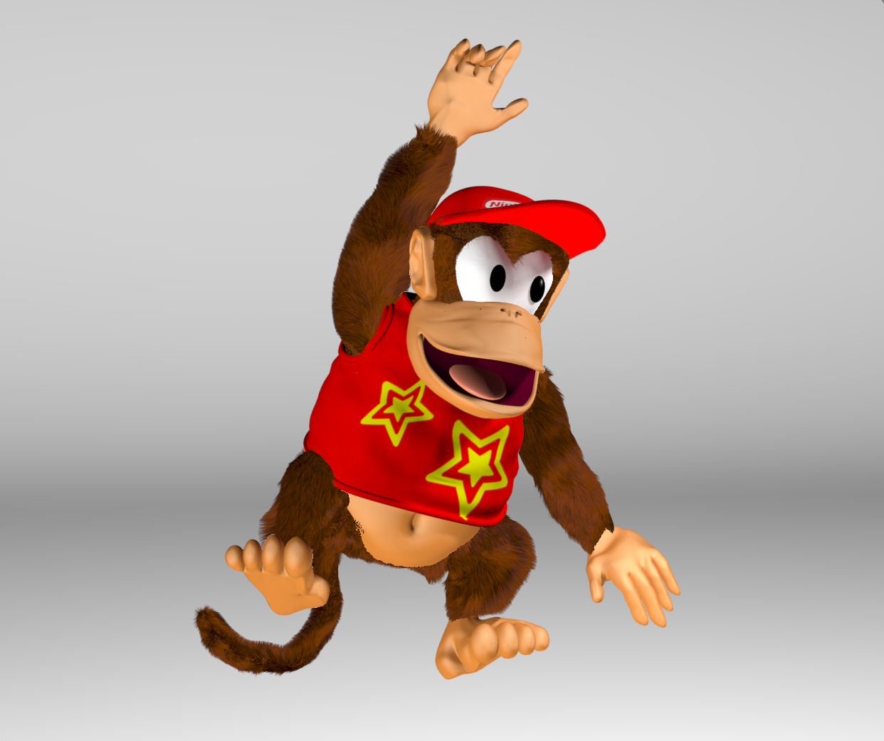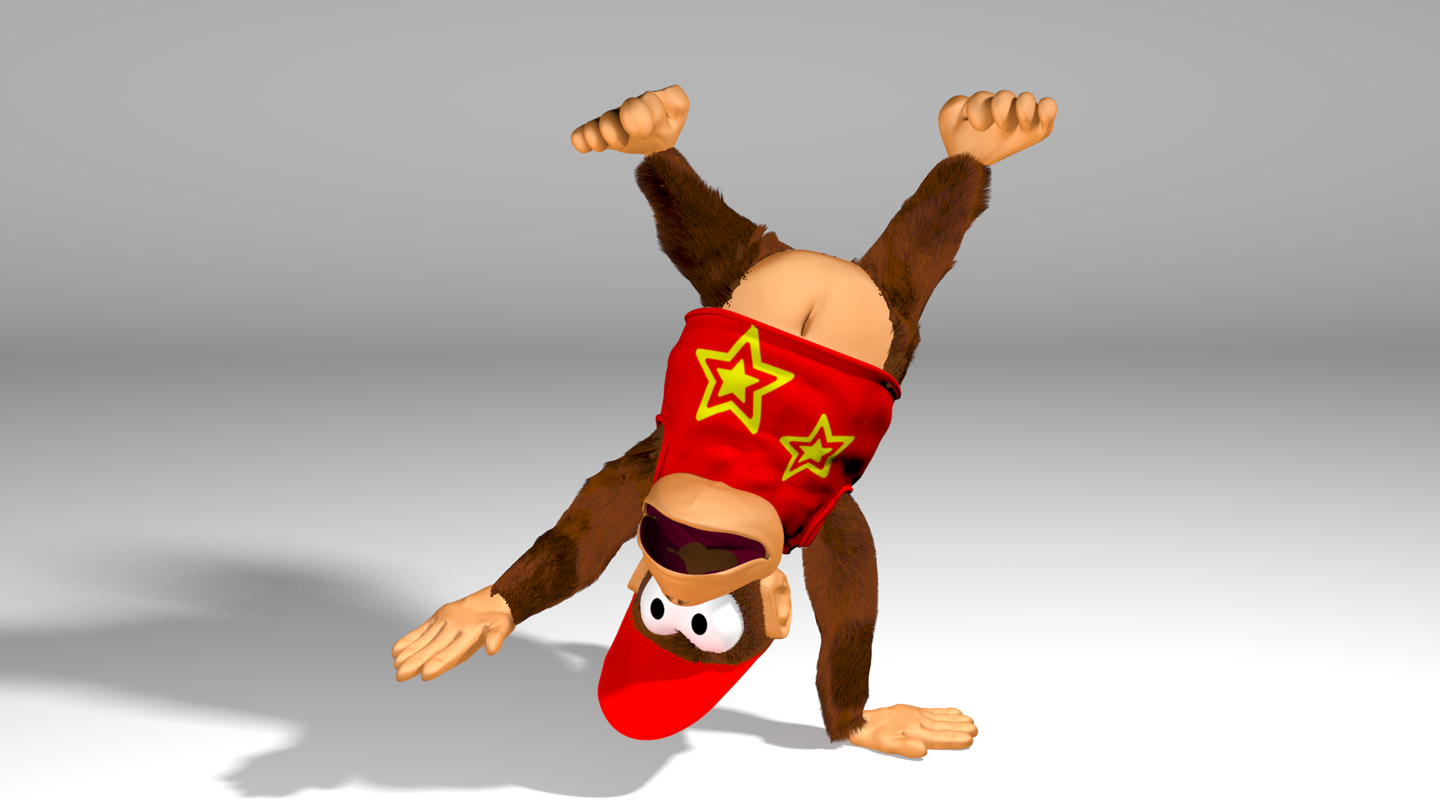 Animation is obviously a very challenging task; it's one thing to be able to model, pose and render (actually it's three things — or many more, depending how you look at it :P), but constructing a convincing animation for as complex a model as Diddy (who basically has five separate limbs, if you count his tail) is another discipline entirely.