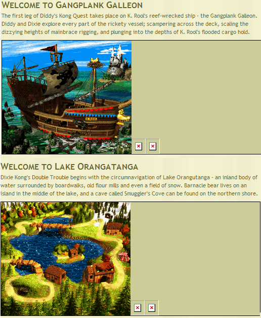 The unusual presentation of the map screens on the DKC2/3 world info pages is something I plan to address soon. I like the way DKC's screens connected, as it makes for quite a nice 'panorama' look, but it's not going to be quite so pretty for the other games. DKC2 had a similar look for Krem Quay, but for the most part I'm going to have to take a different approach.