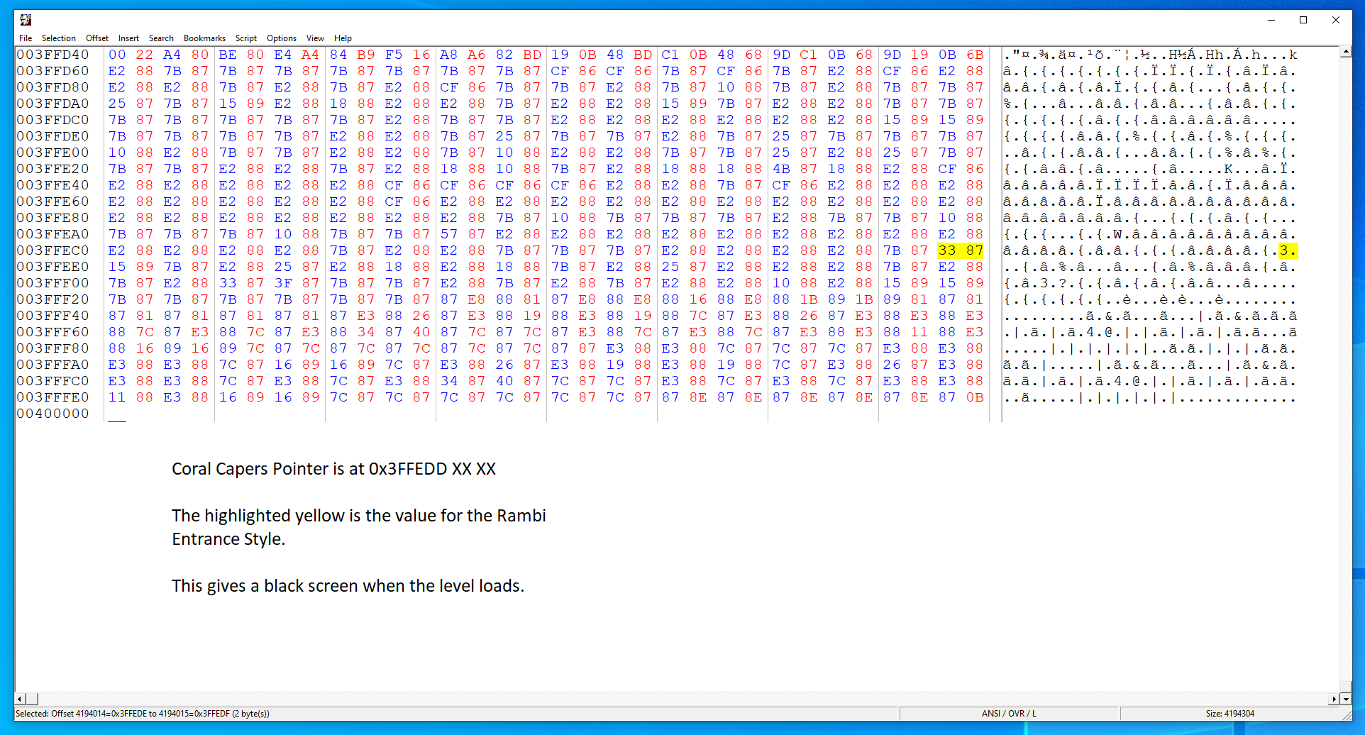 3FFD60 - 3FFF2B | DATA | level entrance style