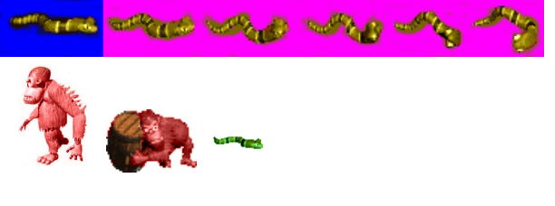 THIS TOPIC IS DYING! Heres some enemies for you guys, just some help: The top is a slinda, a underwater slippa, the manky kong is called a wanky kong, it can walk and when you get close he will throw barrels rapidly, he can also jump back and forth. Last is some guys idea of a enemy called slis which I thought was pretty good, he is rare and is very fast.