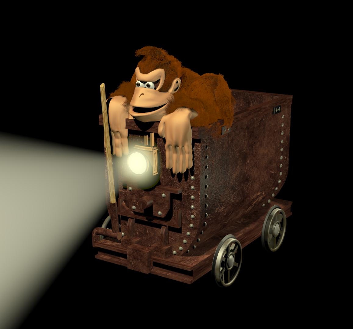 It's looking wonderful! I do agree with mrmugenwii about DK's fingers. His palms should be on top of the cart's edge with his fingers down the front. Also, I know that your minecart is either too big or DK is too small, but I really don't see that as too much of an issue.