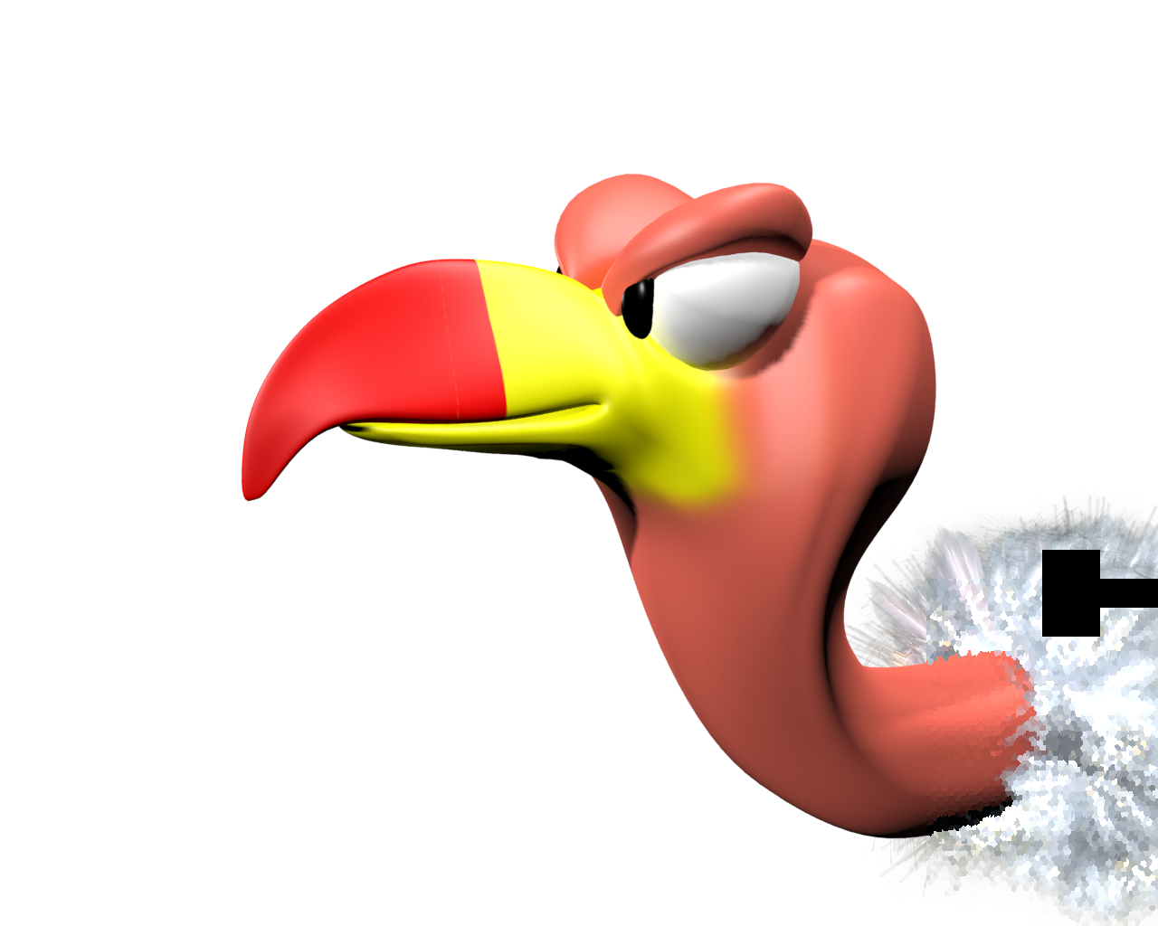 The feathery texture on Sqwawks I used particle objects that were attached to the mesh using Particle Flow. Necky is using feather objects distributed with the hair/fur modifier. Similar approaches but different tools.