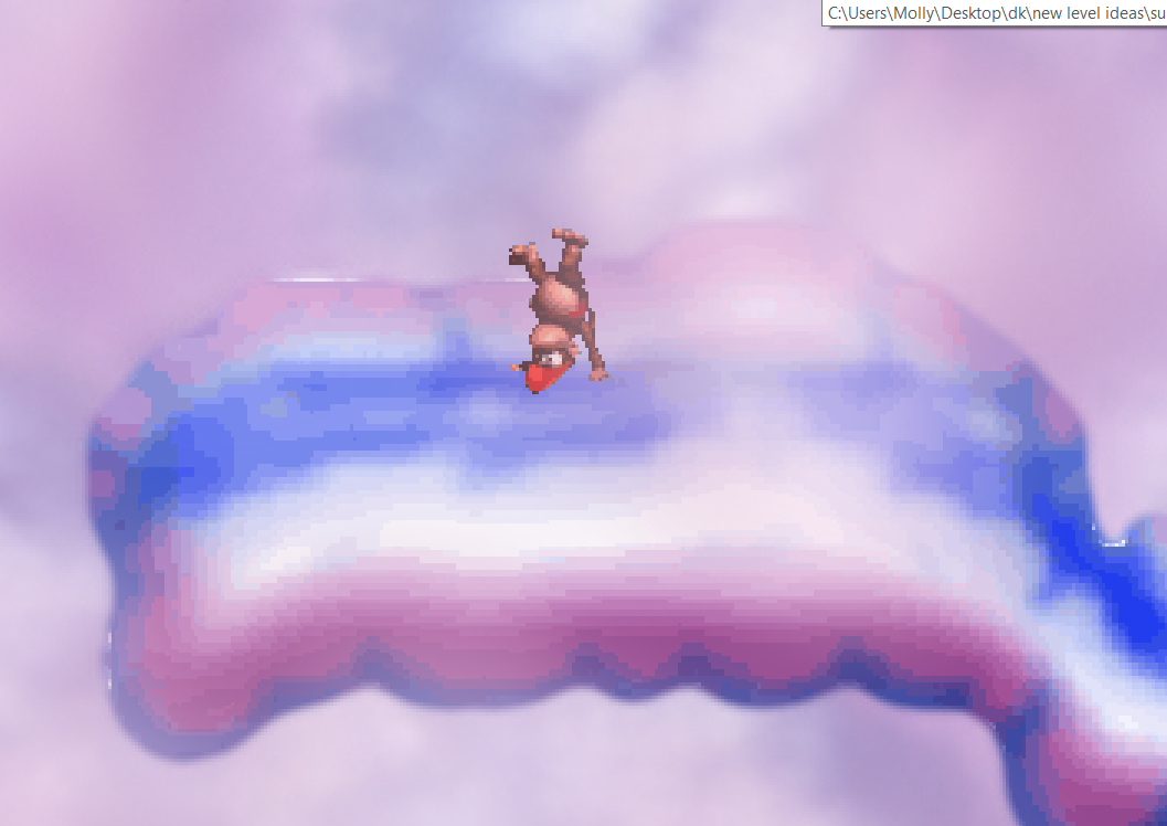 Very cool level designs, everyone! I have a little project going myself involving drawing custom levels, and I've made two so far, using a mix of terrains and sprites from each of the 3 DKC games (all of the stuff is credited). They're only one-layer images, but hopefully they're detailed enough to be nice to look at.