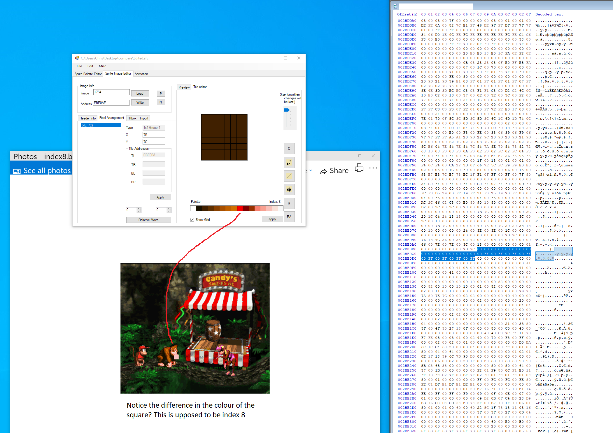 Cyclone wrote:Right now I’m just trying to understand how to read the gfx data and nothing else. I think I found where the first frame of the banana sprite is stored. Now I just need to understand how to read the data in the hex editor.